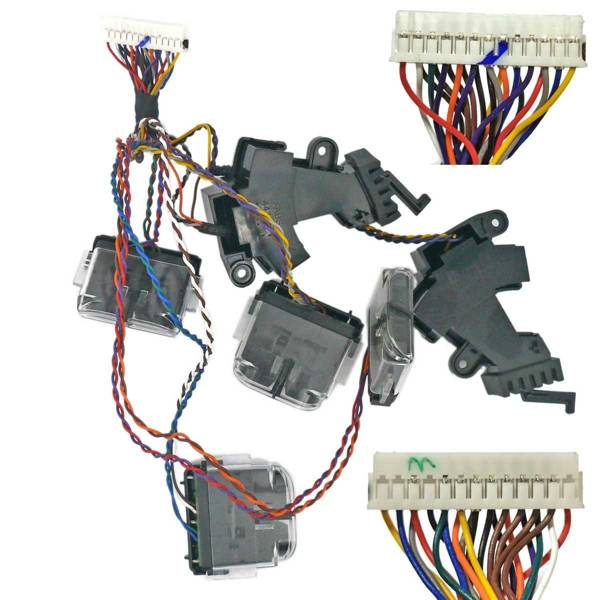 - 4x czujniki upadku IR (czujniki klifu / czujniki przepaści) i czujniki wstrząsu (czujniki zderzaka 4446766 4430169) z wiązką przewodów na złączu żeńskim 26pin (2x13pin)